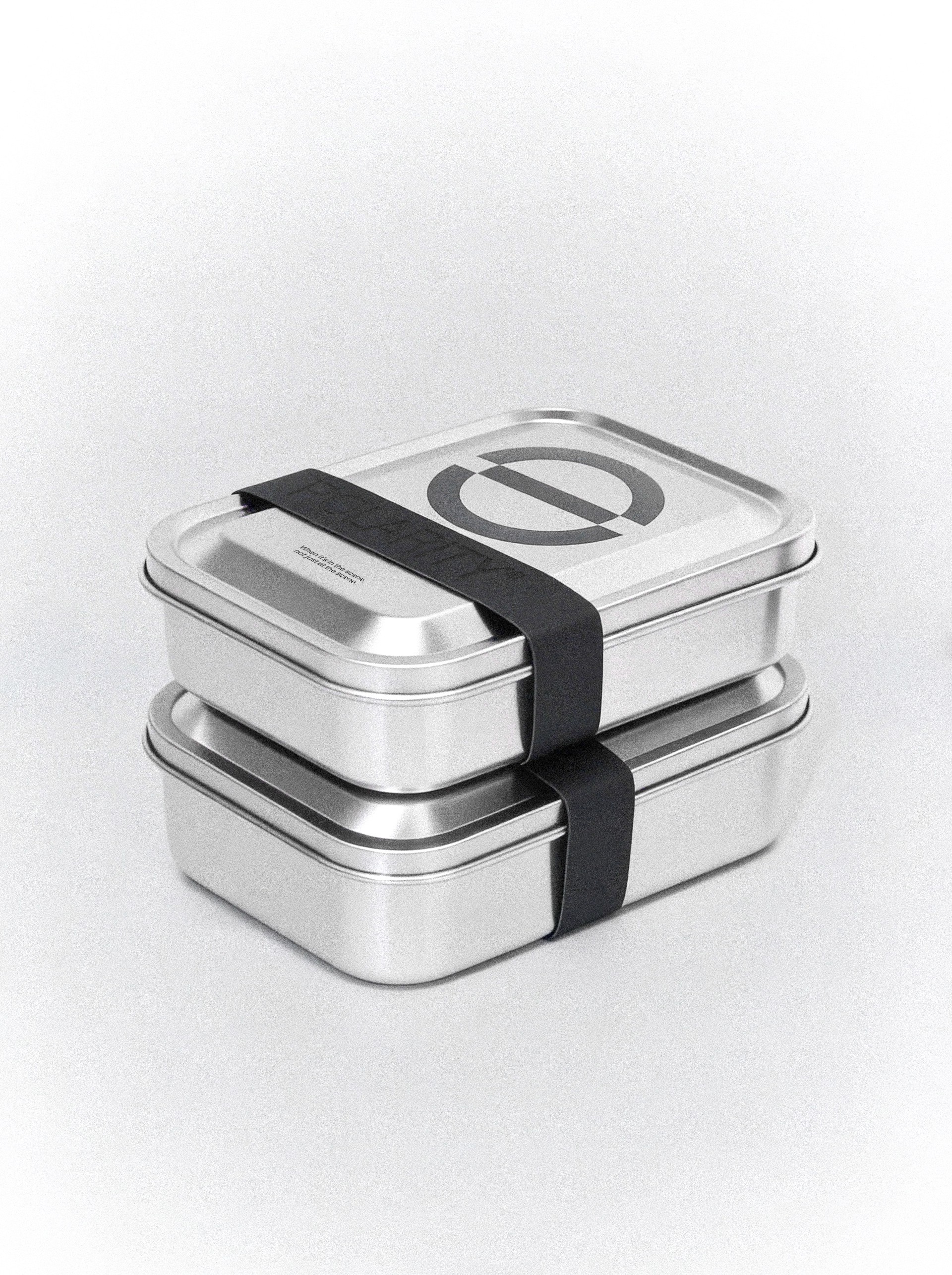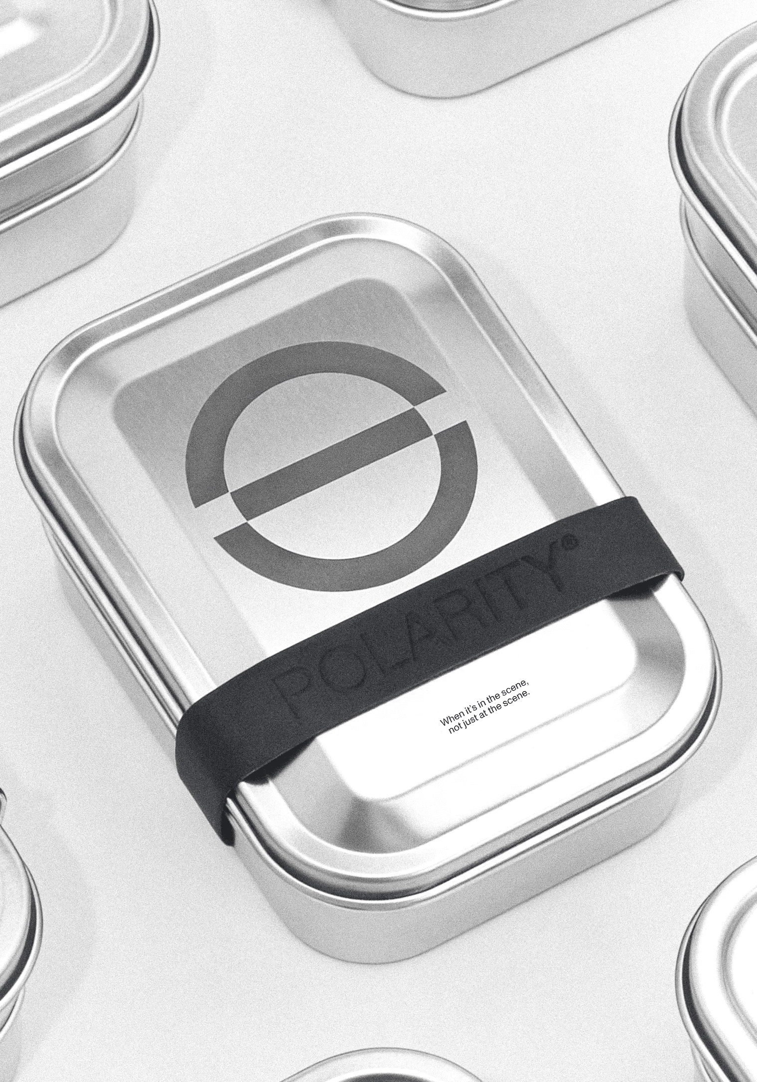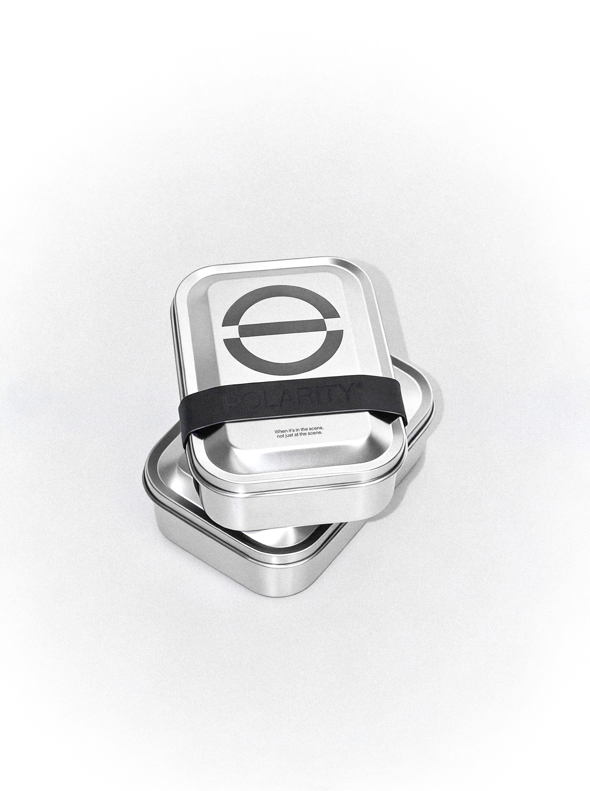 Crafted from brushed stainless steel, this compact lunchbox is designed for movement and everyday carry. A custom laser-engraved elastic strap secures the lid with a precise, minimal gesture while adding a subtle POLARITY signature to the object. The quote “when it’s in the scene, not just at the scene” is laser-engraved across the lid as a quiet reminder of the mindset behind it. Its clean proportions make it easy to travel with, whether in transit, at the studio or outside for the day. A durable interior surface keeps it practical for daily use, while the exterior develops character over time. A functional object made to live with you, not just sit still.